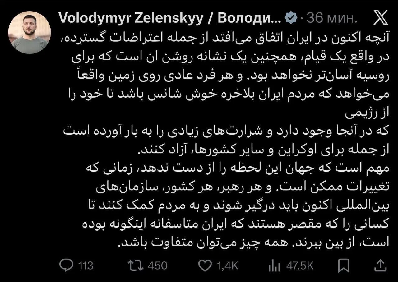 Свой эмоциональный спич просроченный украинский президент продублировал в посте на персидском: