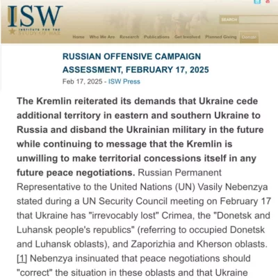 Главная страница » Новости и статьи Россия хочет, чтобы Украина уступила еще около 30% территории, которую она не контролирует, — ISW Автор из команды сайта Опубликовано 18.02.2025Комментариев 1 Добавь сайт в закладки нажми CTRL+D What’s your Reaction? +1 4 +1 45 +1 1 +1 3 +1 0 +1 3 +1 0 What’s your Reaction? +1 4 +1 45 +1 1 +1 3 +1 0 +1 3 +1 0 Поделись видео: