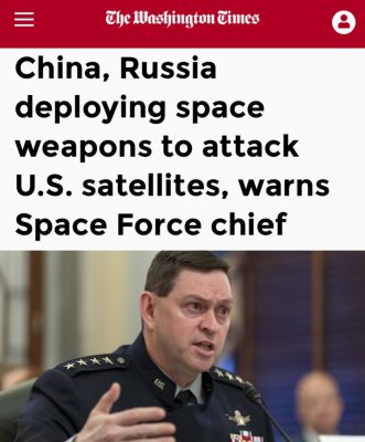 На слушаниях в Сенате Зальцман заявил, что Россия испытывает и развертывает наземное и орбитальное противоспутниковое оружие и кибервозможности, в то время как Китай сосредоточил внимание на лазерах, способных уничтожать спутниковые датчики, а также на электронных глушителях, которые могут нарушить связь и передачу GPS.