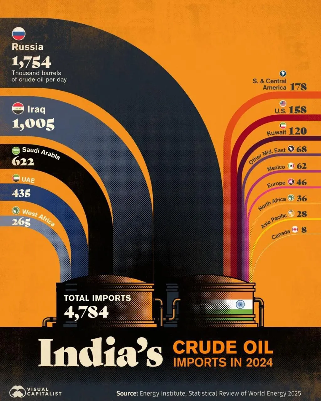 США обеспечивают всего 9% импорта сырой нефти в Индию, и вероятно в ближайшее время этот объем заместят другие экспортёры, предполагают индийские СМИ после введения США 27 августа 50% пошлин против Индии