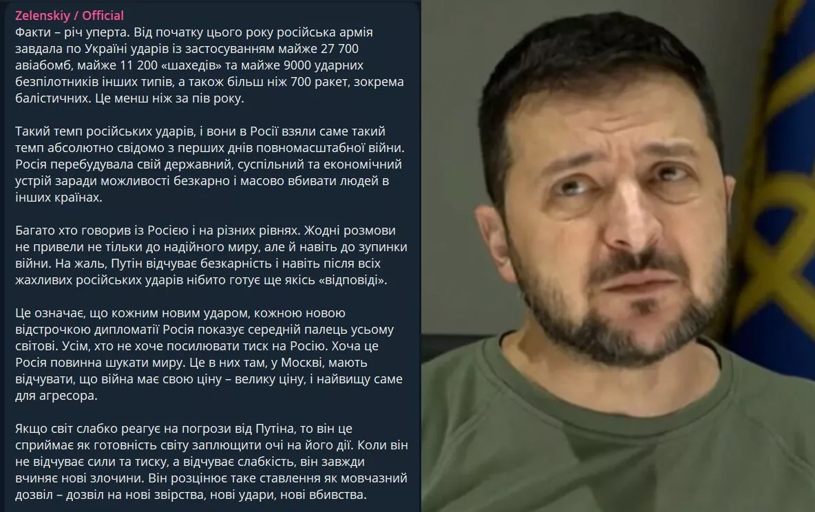 «К сожалению, Путин чувствует безнаказанность и даже после всех ужасающих российских ударов якобы готовит ещё какие-то ответы».