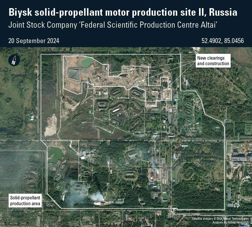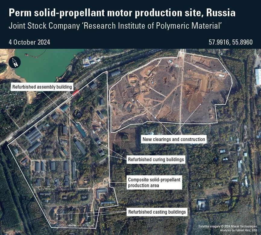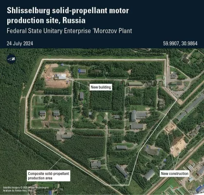 Спутниковые снимки свидетельствуют о том, что одним из направлений этих усилий является производство твердотопливных ракетных двигателей. На пяти объектах, связанных с производством ракетного топлива, наблюдается значительная активность.