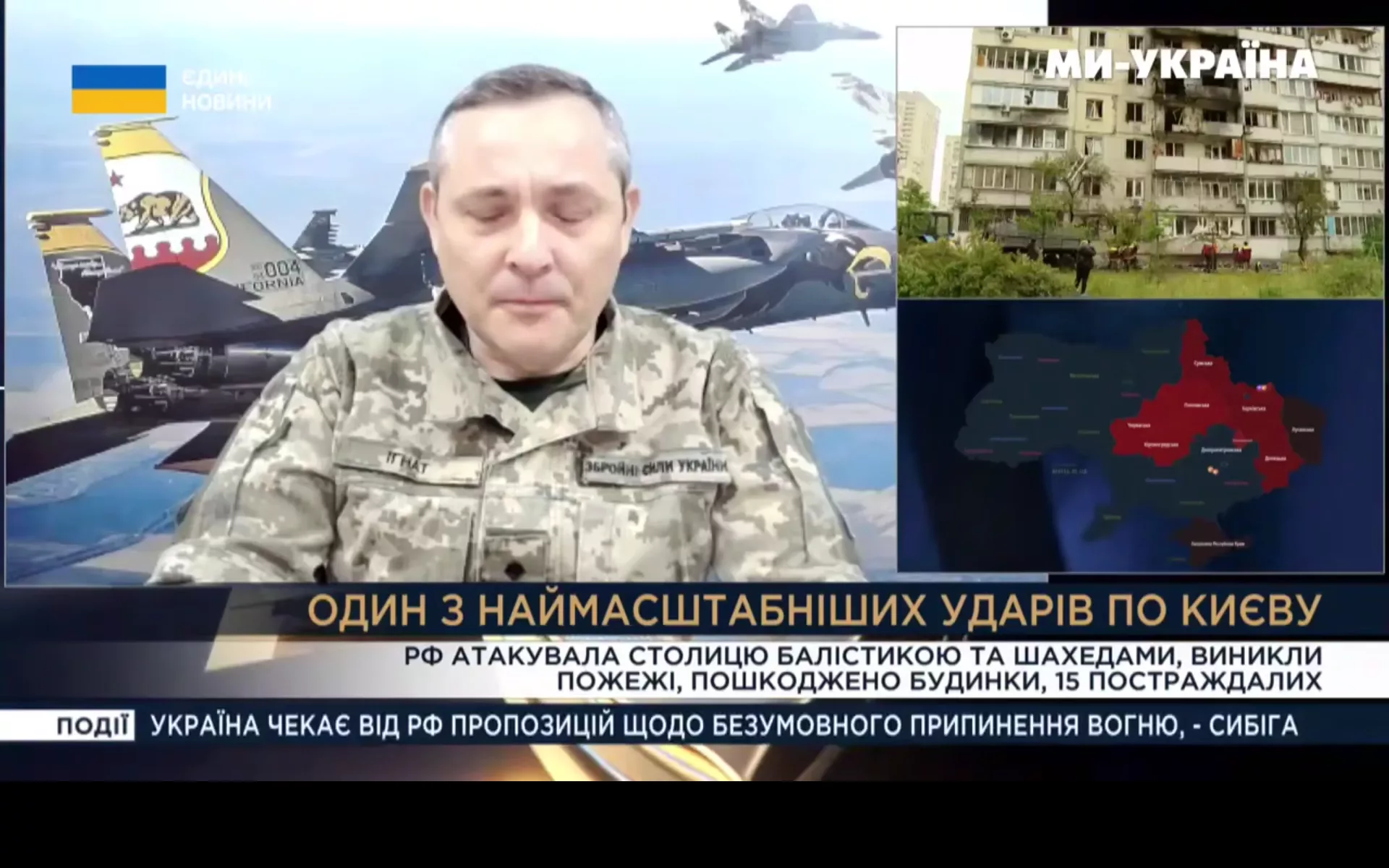 Об этом заявил начальник управления коммуникаций Воздушных сил украинских формирований Юрий Игнат, комментируя сегодняшний ночной комбинированный удар ракетами и дронами по Киеву.