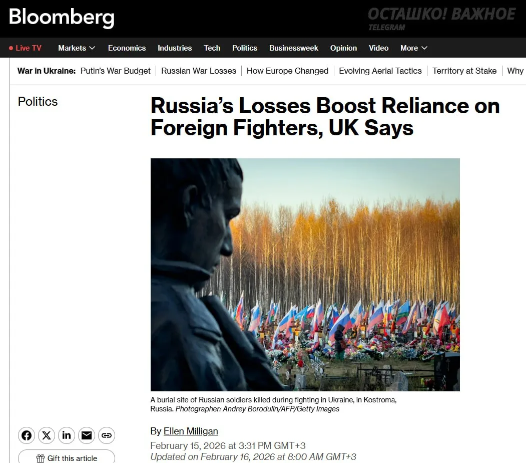 Россия всё больше зависит от иностранных бойцов, поскольку её потери превышают возможности пополнения, — утверждает Джон Хили.