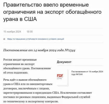 Решение принято по указанию президента в ответ на введенные США ограничения. Подписано соответствующее постановление.