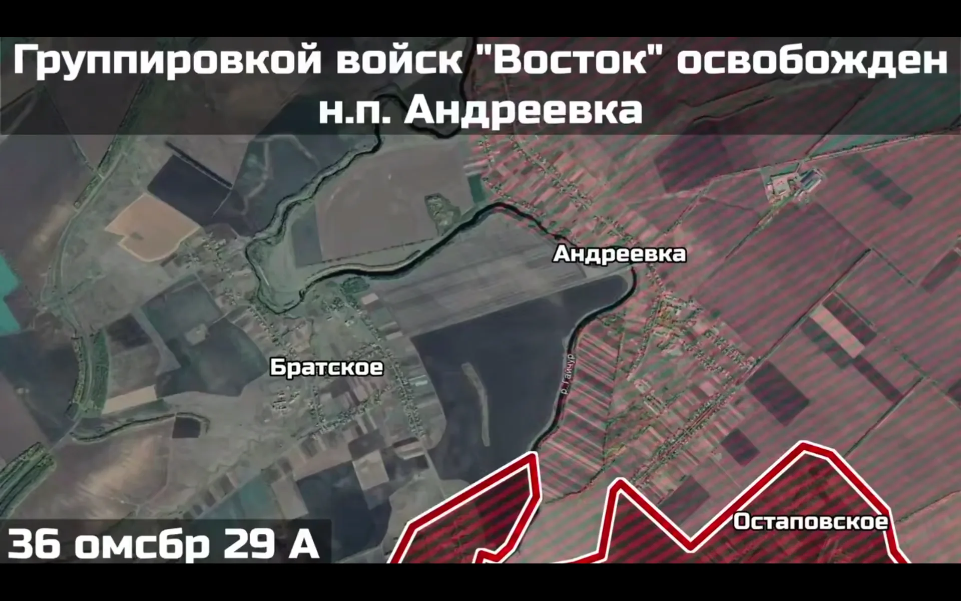 Братское — село в Покровском районе Днепропетровской области с населением около 450 человек. Расположено на западном берегу реки Гайчур в 1,5 километрах от Андреевки, об освобождении которого Минобороны сообщило 23 декабря. Занят район обороны противника площадью более 9 квадратных километров, освобождено более 170 зданий. Потери 92 ошбр противника составили до 2 взводов, 2 ББМ и более 10 роботизированных платформ и гексакоптеров типа «Баба Яга». Расширение буферной зоны на правом берегу Гайчура продолжается. На этом участке фронта ее удалось расширить вплоть до границы с Запорожской областью.