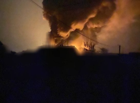 После атаки ВС РФ по критическому объекту начался мощный пожар.