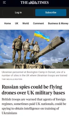 Издание сообщает, что британских солдат уже предупредили о том, что российские шпионы могут использовать БпЛА для сбора информации об украинских войсках. Минобороны Британии заявило, что принимает серьезные меры для защиты военных объектов.