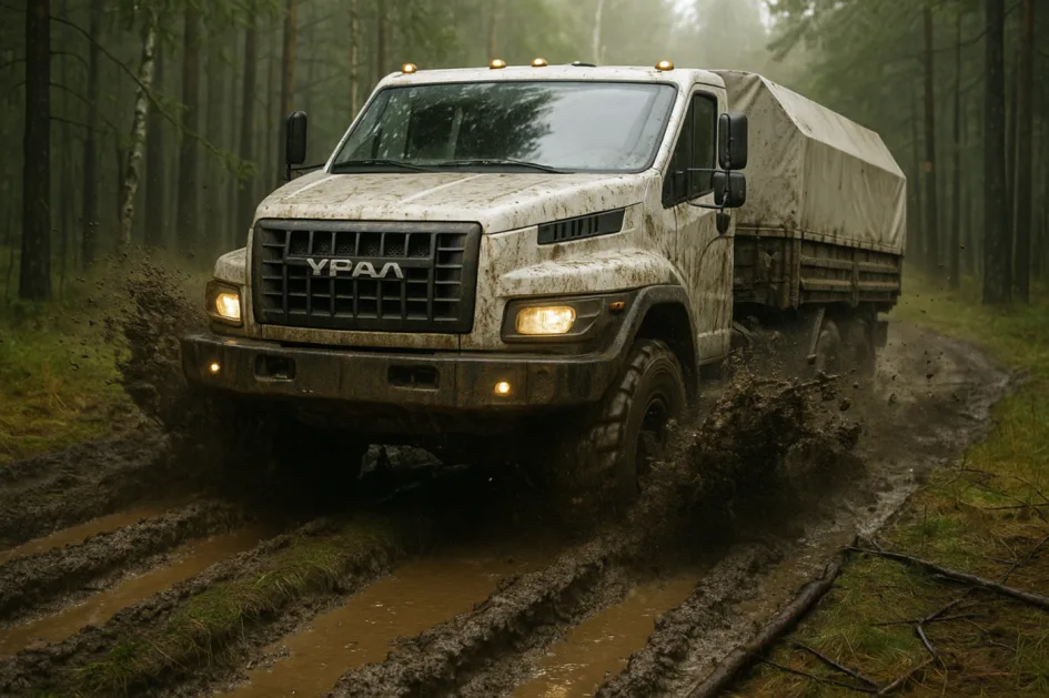 Первое место по праву занимает УРАЛ NEXT. Эта машина давно стала символом проходимости: колеса 6×6 или 4×4, значительный дорожный просвет, мощные дизели ЯМЗ, усиленная рама и минимум электроники. УРАЛ NEXT не боится ни трескучих морозов, ни холодных луж, ни каменных подъемов. Его конструкции рассчитаны на эксплуатацию при температуре до -50°C, а простота обслуживания позволяет быстро устранять неполадки даже в полевых условиях.