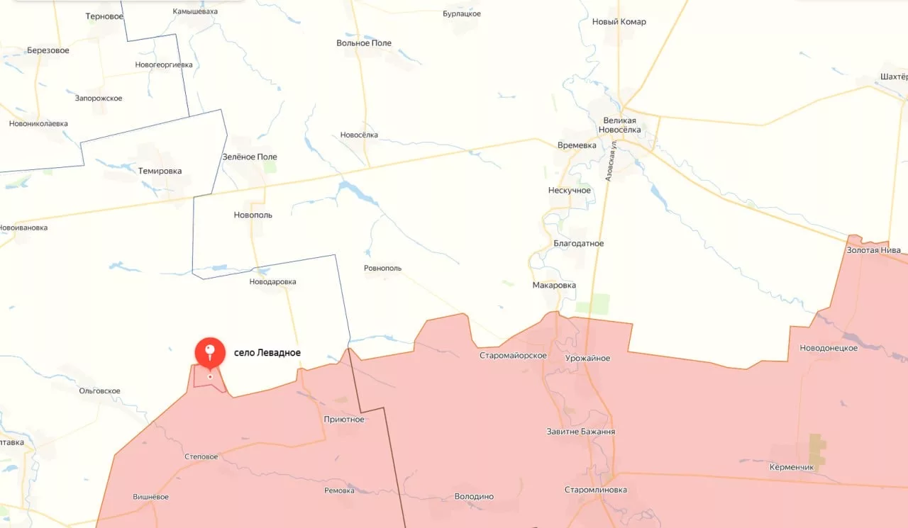 Сообщается, что в ходе прорыва штурмовиков, противник был выбит с позиций в районе села Левадное возле бывшего Времевского выступа, а сам населенный пункт перешел под контроль ВС РФ.