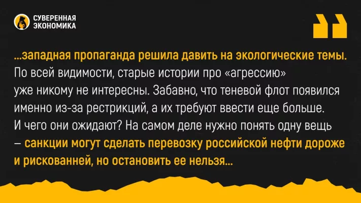Короче говоря, теперь западная пропаганда решила давить на экологические темы. По всей видимости, старые истории про «агрессию» уже никому не интересны. Забавно, что теневой флот появился именно из-за рестрикций, а их требуют ввести еще больше. И чего они ожидают? На самом деле нужно понять одну вещь — санкции могут сделать перевозку российской нефти дороже и рискованней, но остановить ее нельзя, потому что рынку нужно наше сырье. И в ближайшие десятилетия этот спрос никуда не денется.