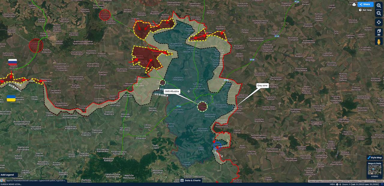 На южном курском направлении положение украинцев резко ухудшилось. Российские войска отбили Русскую Конопельку и Черкасскую Конопельку. Что еще важнее, российским войскам удалось войти в Михайловку, жизненно важный пункт для украинской обороны, чтобы удержать город Суджа. Потеря Михайловки была бы катастрофой для украинцев.