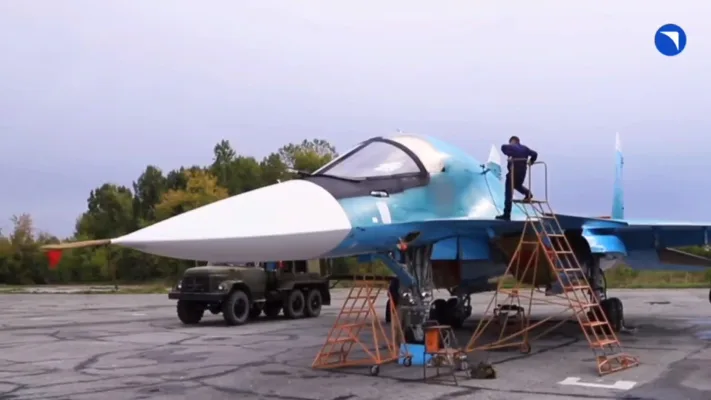 Наша Объединенная авиастроительная корпорация изготовила и направила в войска новую партию истребителей-бомбардировщиков Су-34. Этот самолет выполняет боевые задачи в любое время дня и ночи даже в сложных метеоусловиях с применением различного вооружения.