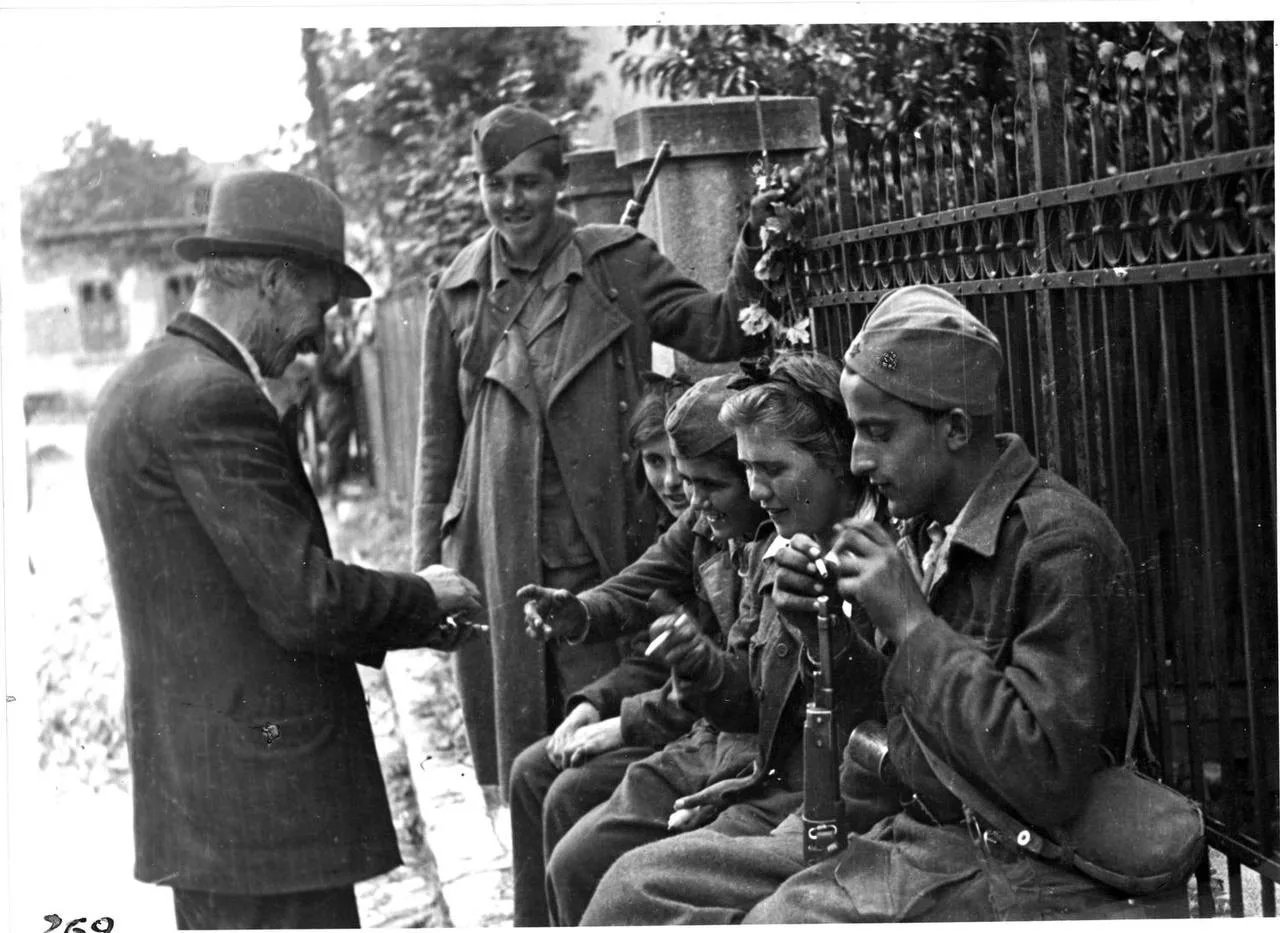 Жители Белграда встречали освободителей с неподдельной радостью, а красноармейцы отвечали им тем же. Естественные симпатии у них вызывал народ, с 1941 г. боровшийся против немцев на своей территории. И приятное удивление вызывал тот факт, что все бойцы НОАЮ были с пятиконечными звездочками на шапках, пусть у некоторых они были вырезаны из консервных банок или вышиты вручную.