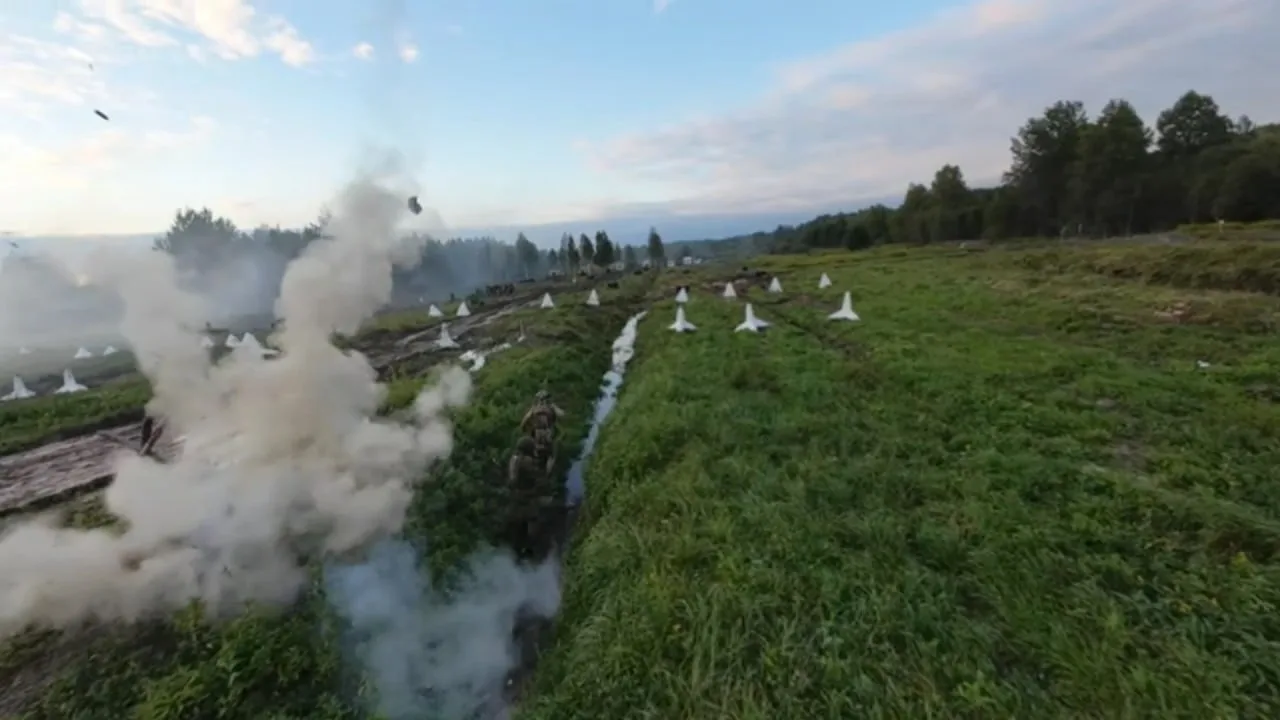 Одна сторона при помощи инженерной техники наводила переправы для продвижения, другая же наносила условные удары FPV-дронам по инженерам и пехоте первой стороны.