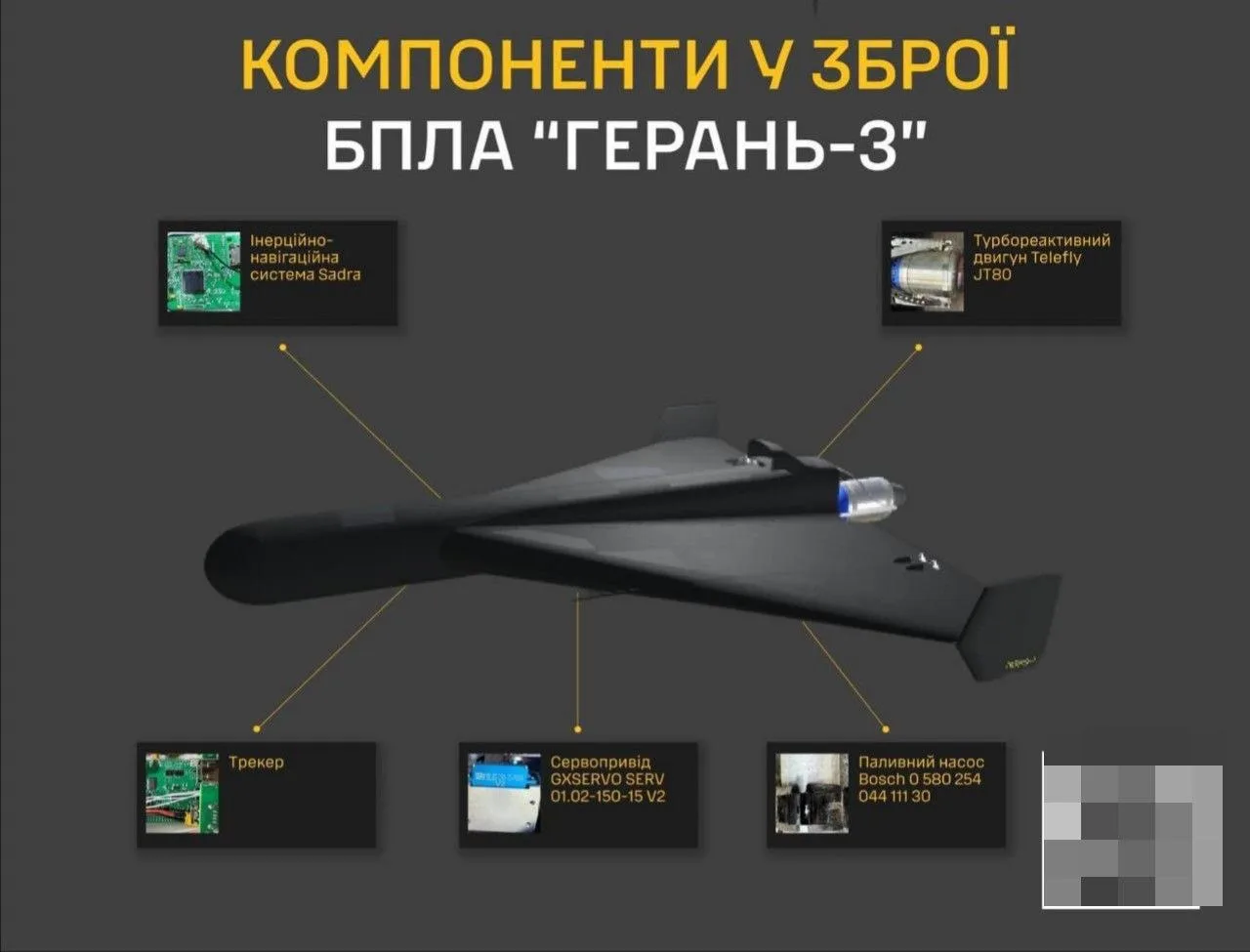 В последнее время все чаще применяются реактивные Герани, получившие обозначение Герань-3. И вот хохлятская разведка нашла достаточное количество обломков и написала статью на своем сайте с обозначением компонентов этого летательного аппарата.