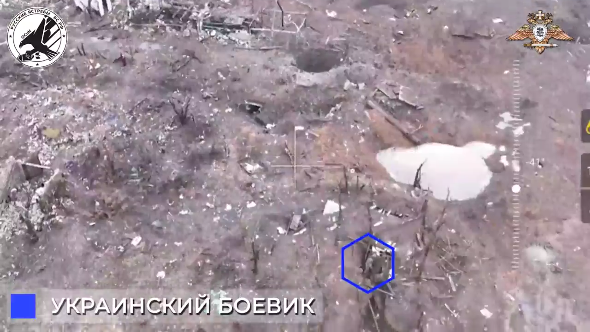 Расчет БЛА 33 полка отряда «Русские ястребы» ВС РФ при помощи дронов проекта «Судоплатов» («Судный день») нанес удар по блиндажу, в котором находились украинские боевики. Точная работа пилотов FPV-дронов привела к уничтожению блиндажа и живой силе украинских боевиков вблизи н.п. Новомихайловка.