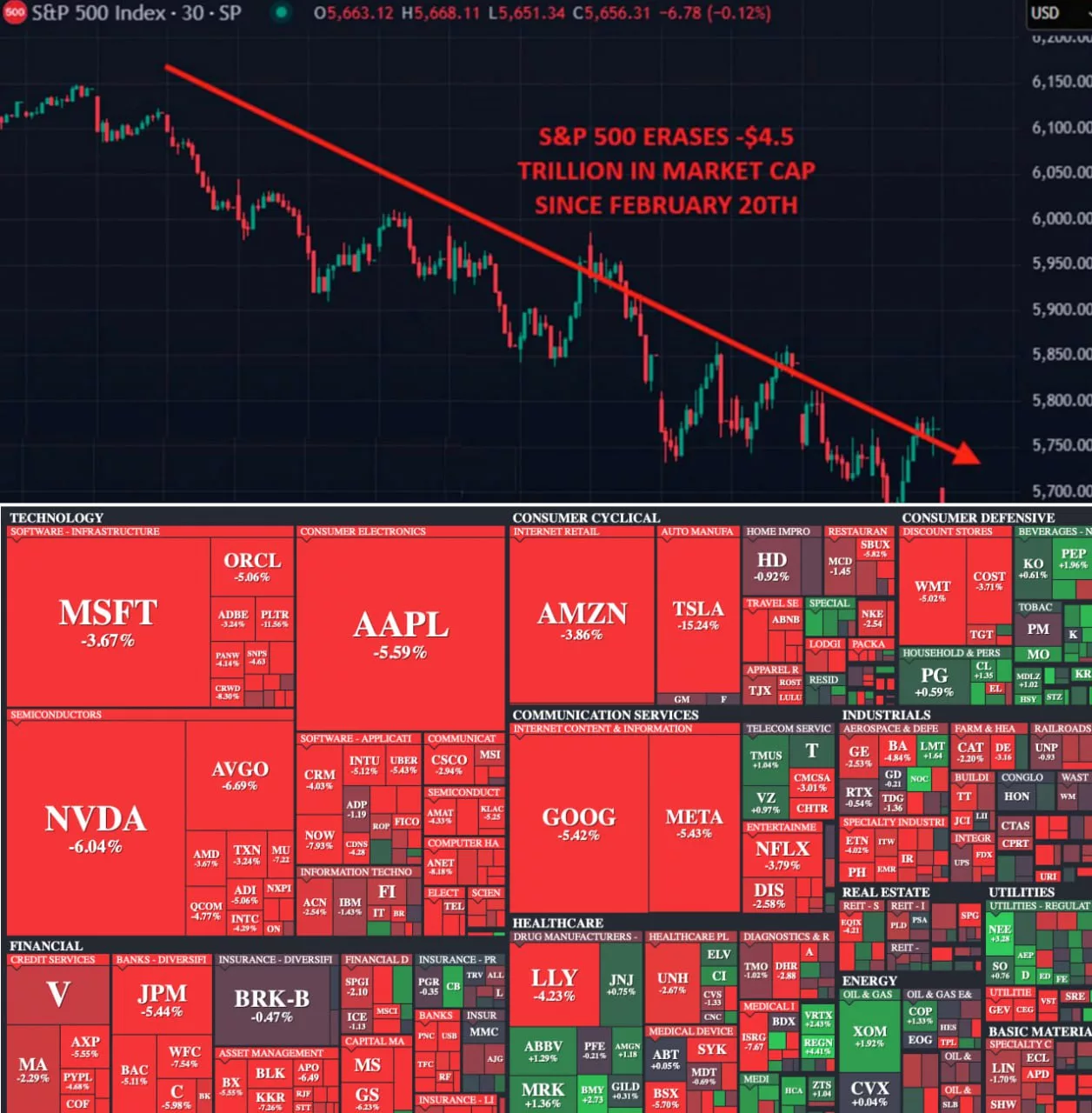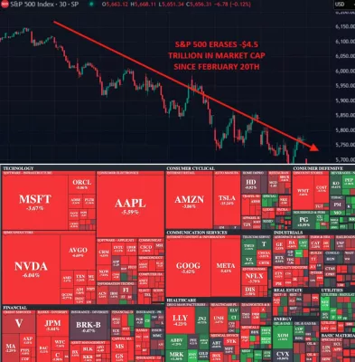 С 20 февраля индекс S&P 500 потерял $4,5 трлн рыночной капитализации, а технологический сектор США обесценился на $1 трлн всего за день после заявлений Дональда Трампа о возможной рецессии. Крипто рынок также обвалился на $1,3 трлн за последние три месяца.