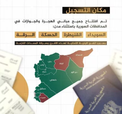 Недавно Министерство внутренних дел переходного правительства Сирии на своей странице в соцсети X (бывший Twitter) опубликовало карту страны: на ней показаны регионы, где сирийцы смогут оформить (отмечены зеленым цветом) новые паспорт и миграционную карту, а где нет (отмечены красным).
