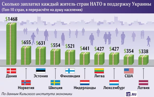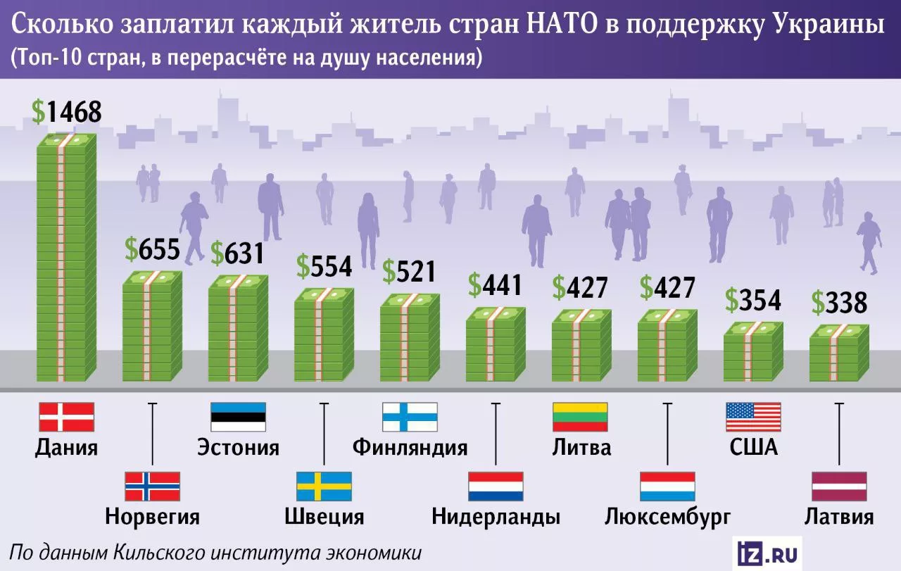 ▪️Лидирует Дания — $1468 с человека, за ней Норвегия — $655 и Эстония — $631.