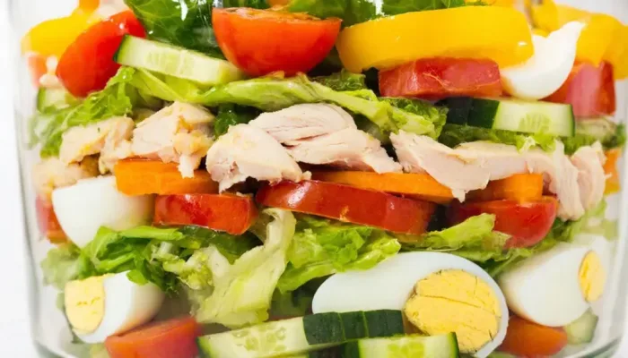 Этот салат, который пользовался популярностью в советских ресторанах, объединяет в себе нежное куриное мясо, свежие и маринованные овощи, а также легкий сладковатый привкус чернослива.