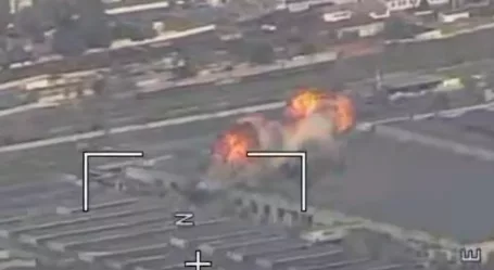 На видео запечатлен ракетный удар по пункту временного дислокации 406-й отдельной артиллерийской бригады ВСУ, расположенной на территории Херсонского машиностроительного завода.