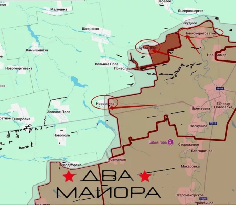 На Бурлацком направлении ВС России продвинулись широким фронтом на участке шириной до 5.93 км на глубину до 2 км, занял большую часть н.п. Бурлацкое и вышел к восточной окраине н.п. Привольное.