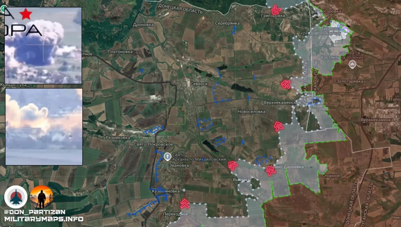 - Подразделения ВС РФ продолжают наступательные действия на Северском направлении, расширяя зоны контроля в Верхнекаменском и Ивано-Дарьевке. Артиллерийская и беспилотная поддержка значительно усиливает позиции ВС РФ, создавая угрозу для обороны противника.