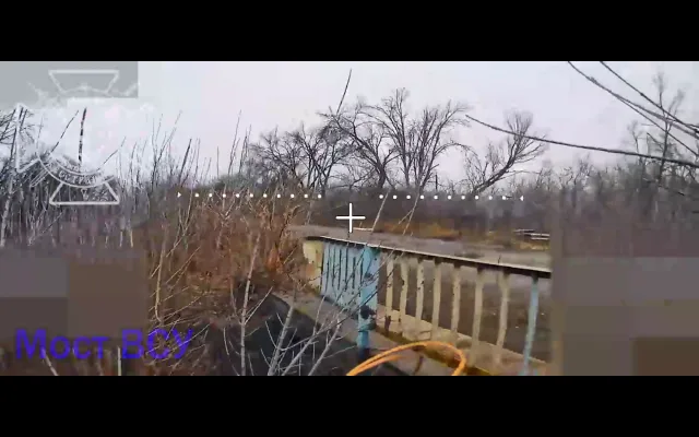 Волчанское направление. Сначала мост попытались уничтожить с помощью дрона и заложенных под ним заблаговременно мин, после чего по нему ударили из тяжелой реактивной артиллерии.