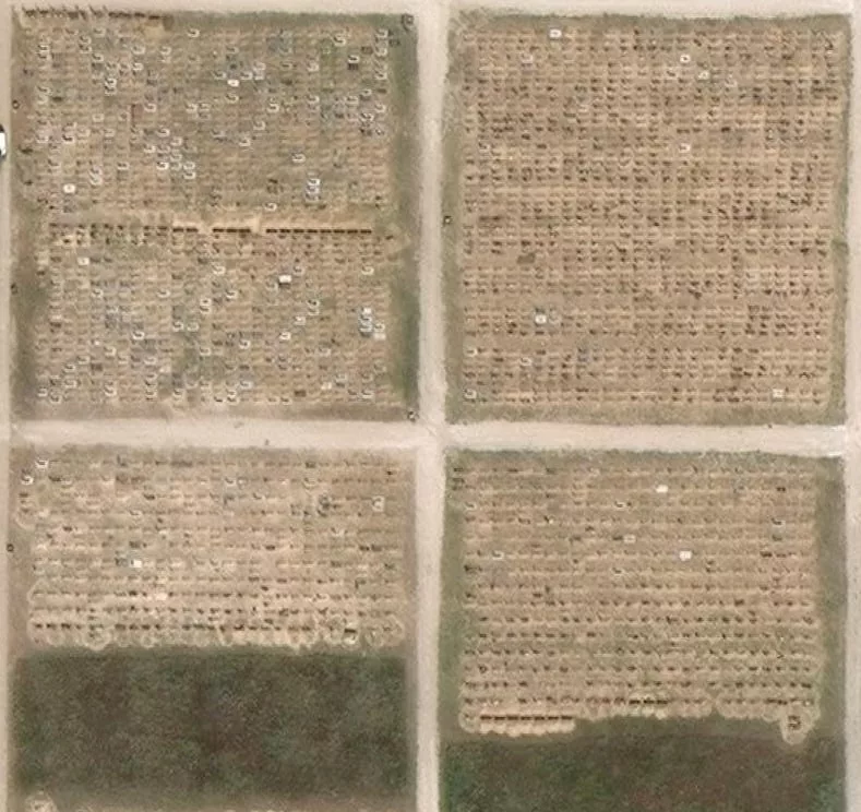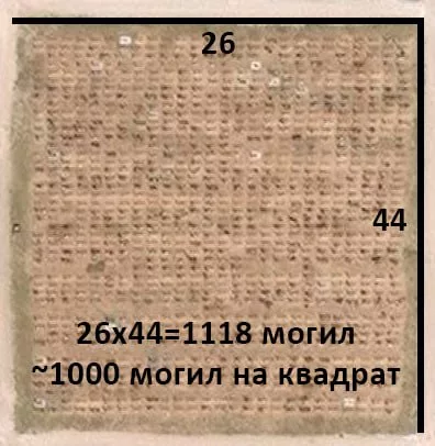 По качеству спутникового снимка можно посчитать ориентировочное количество могил на квадрат — получается где-то около 1000 могил (изображение 3).