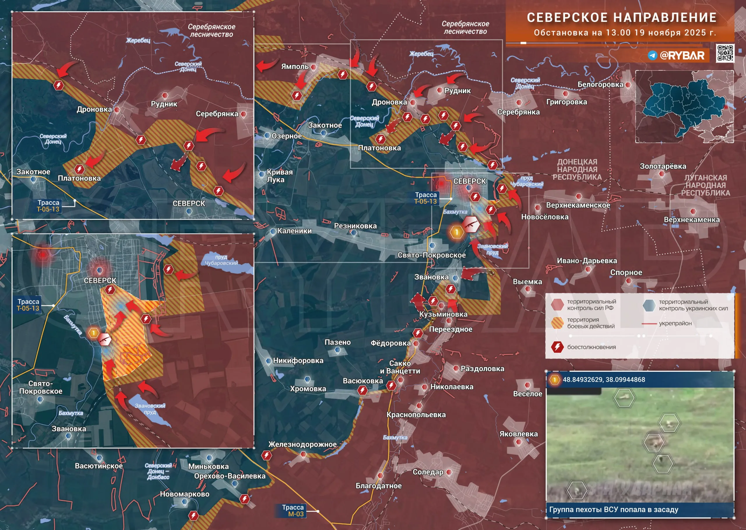 При этом на днях в южной части Северска в засаду попала группа украинской пехоты на улице рядом с дорогой из Звановки. Так что российские успехи могут быть скрыты «туманом войны» и на деле оказаться даже более масштабными.