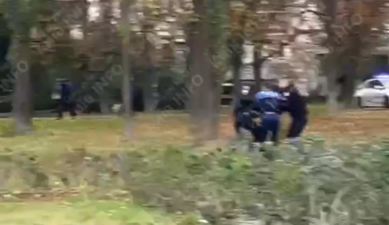 Двое полицейских скрутили и повалили на землю очередного украинского «добровольца».