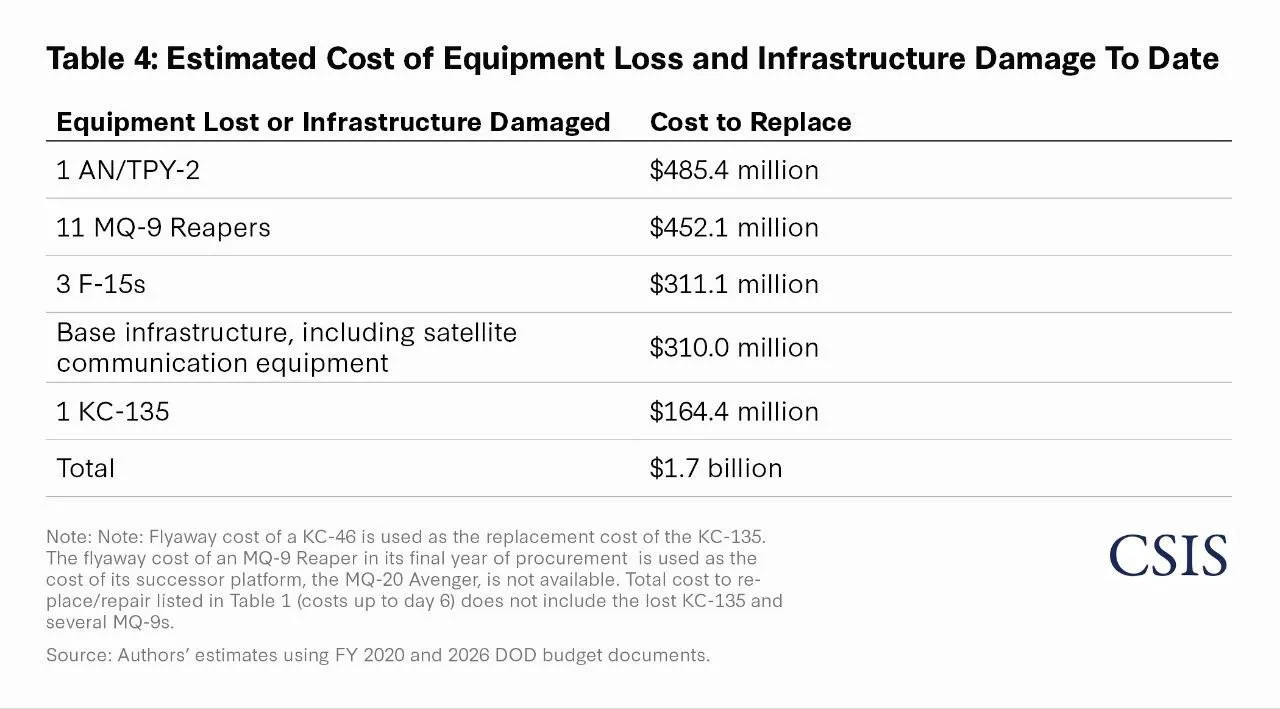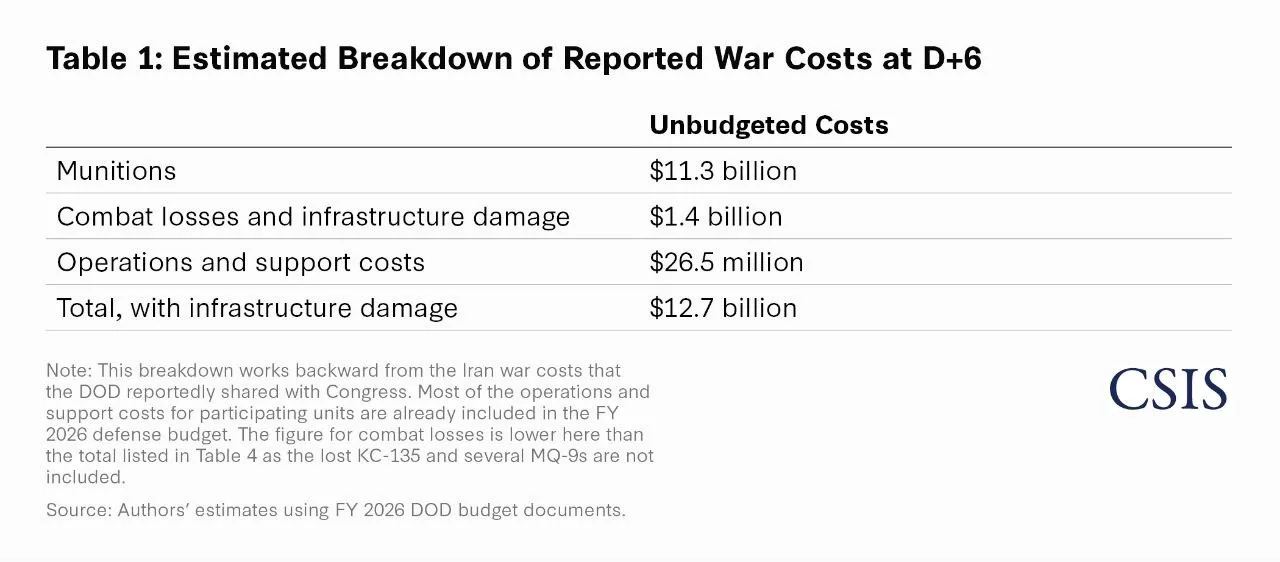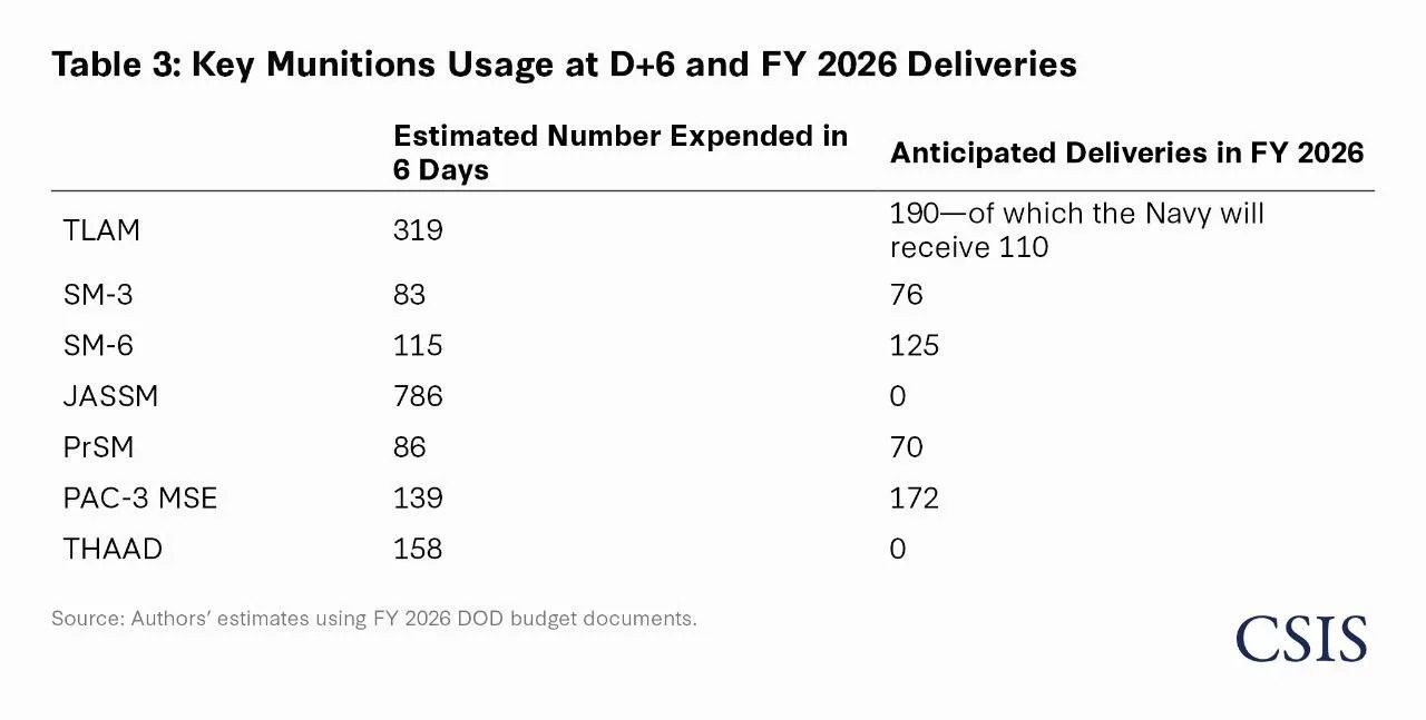 Центр стратегических и международных исследований (CSIS) приводит свои данные по расходу Америкой боеприпасов в агрессии против Ирана в контексте стоимости операции.