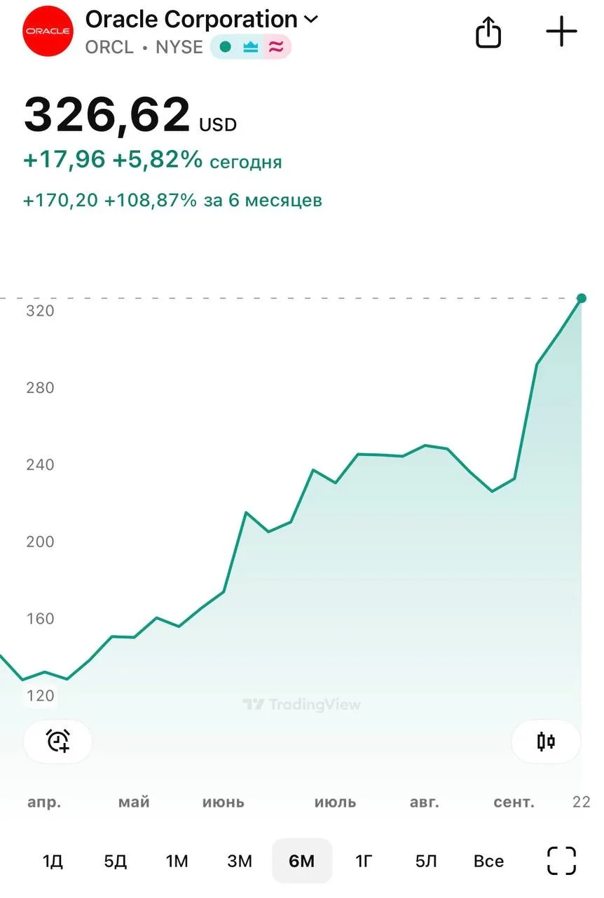 Акт 2 — Open AI анонсирует сотрудничество с Oracle, $300 миллионов инвестиций — акции Oracle демонстрируют самый большой рост в истории.