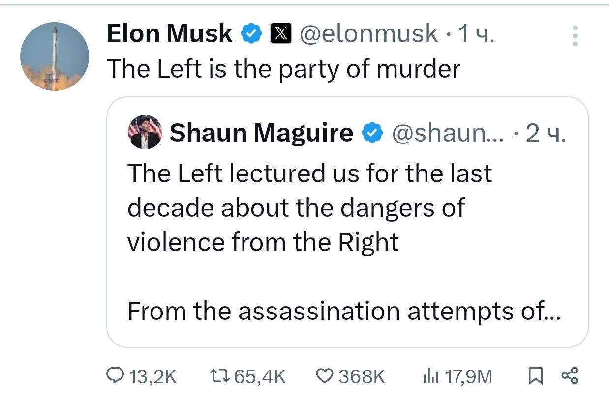 ▪️Илон Маск заявил, что «Левые — это партия убийц и убийств».