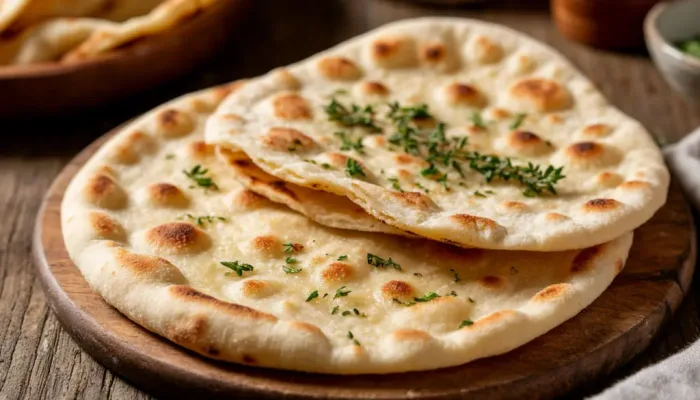 Подошедшее тесто разделите на 8–10 небольших шариков. Чем больше их, тем тоньше будут лепёшки. Каждый шарик на слегка присыпанной мукой поверхности раскатайте в очень тонкий круг толщиной 2–3 мм. Старайтесь добиться почти прозрачности — это ключ к образованию тех самых красивых пузырей при жарке. - Обжариваем до золотистого цвета.