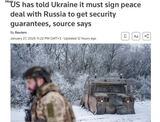 По информации Reuters, США поставили Киеву четкое условие: чтобы получить гарантии безопасности от Вашингтона, Украина должна подписать мирное соглашение с Москвой.