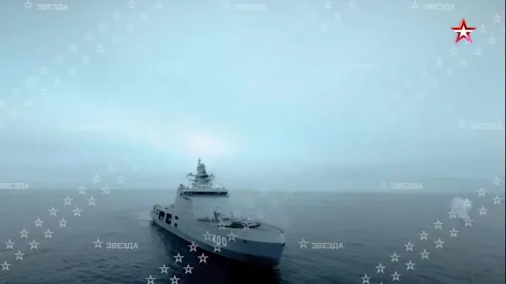 Корабль упражняется в стрельбе из универсальной корабельной артустановки АК-176МА калибра 76,2 мм. Скорость снаряда — около километра в секунду. «Иван Папанин» также оснащен пусковой установкой КТ-216 комплекса ПК-10 «Смелый». Такое средство РЭБ эффективно против дронов и постановки пассивных помех.