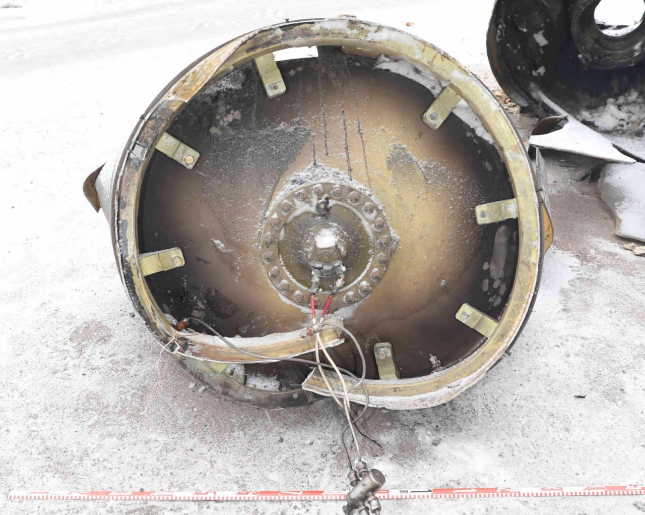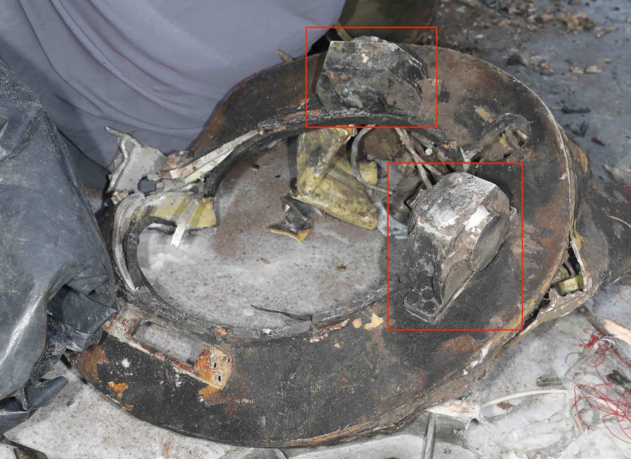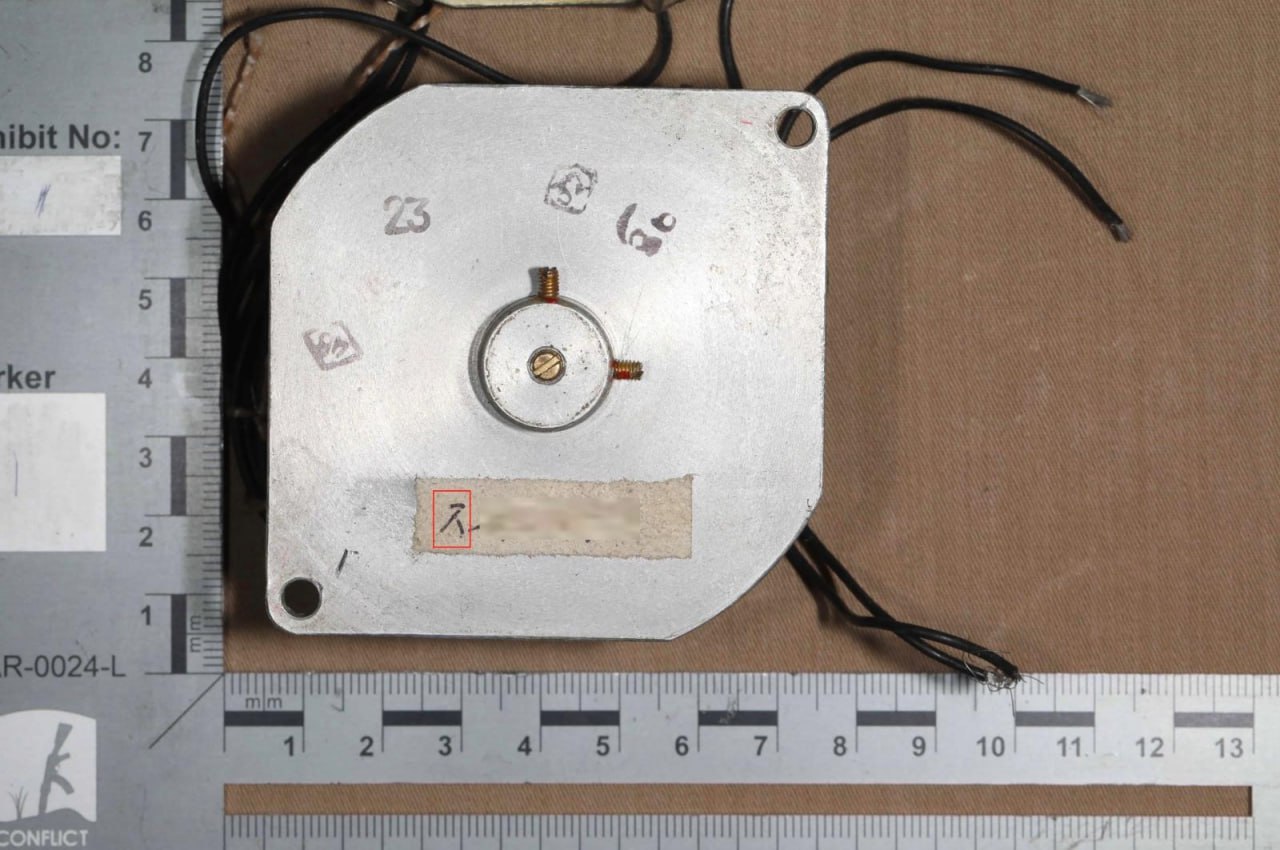 На одном из обломков можно увидеть символ, напоминающий достаточно необычно написанный от руки корейский ㅈ и предваряющий, видимо, некую серийную маркировку.