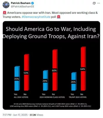 Последний опрос Института демократии показал, что подавляющее большинство американцев не хотят войны с Ираном.
