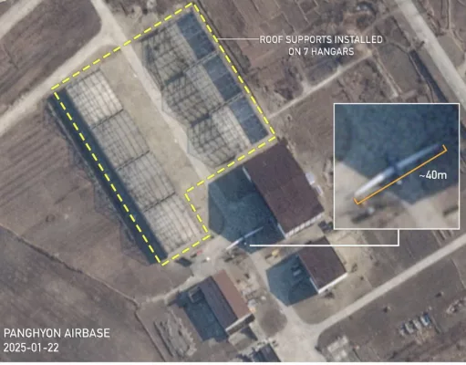 На одном из снимков, можно увидеть новые большие ангары, а также ранее неизвестный БПЛА с размахом крыла около 40 метров.