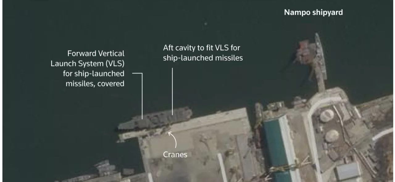 Так, американский эксперт Джеффри Льюис, идентифицировал в передней части одного из кораблей (в районе верфи в Нампхо) не менее 32 мест для установок вертикального пуска (УВП) для крылатых или/и противокорабельных или/и зенитных ракет.