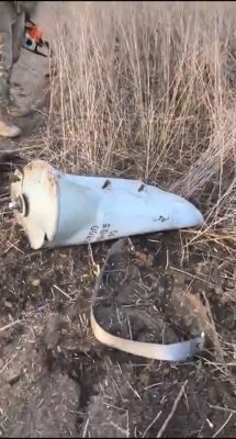 Как и на прошлых фото приземления РБК-500, признаком штатной работы является отсутствие у бомбы хвостовой части и валяющихся вокруг суббоеприпасов, так как они в полете как раз и отстреливаются из него.