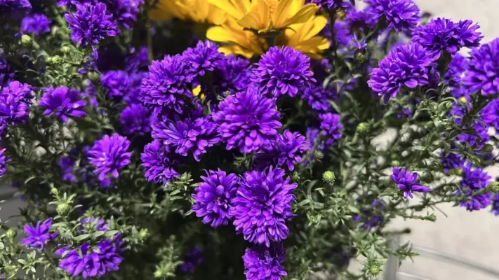- По фактуре: Декоративные злаки (овсяница, сеслерия) подчеркнут нежность лепестков