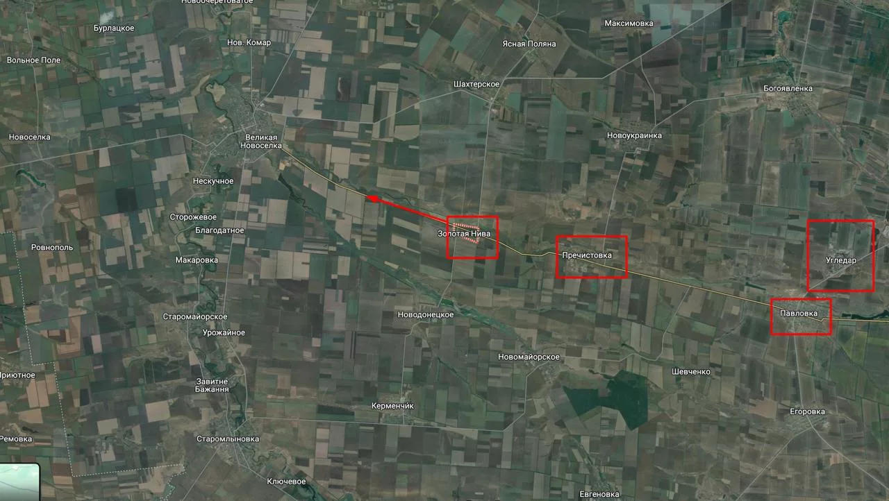 Это самая близкая точка к Великой Новосёлке, откуда начинался южно-донецкий этап контрнаступления ВСУ. До неё осталось меньше 10 километров. Если (когда) Великую Новосёлку возьмут, весь участок фронта под ВСУ в этом районе скатается в рулон и отвалится.