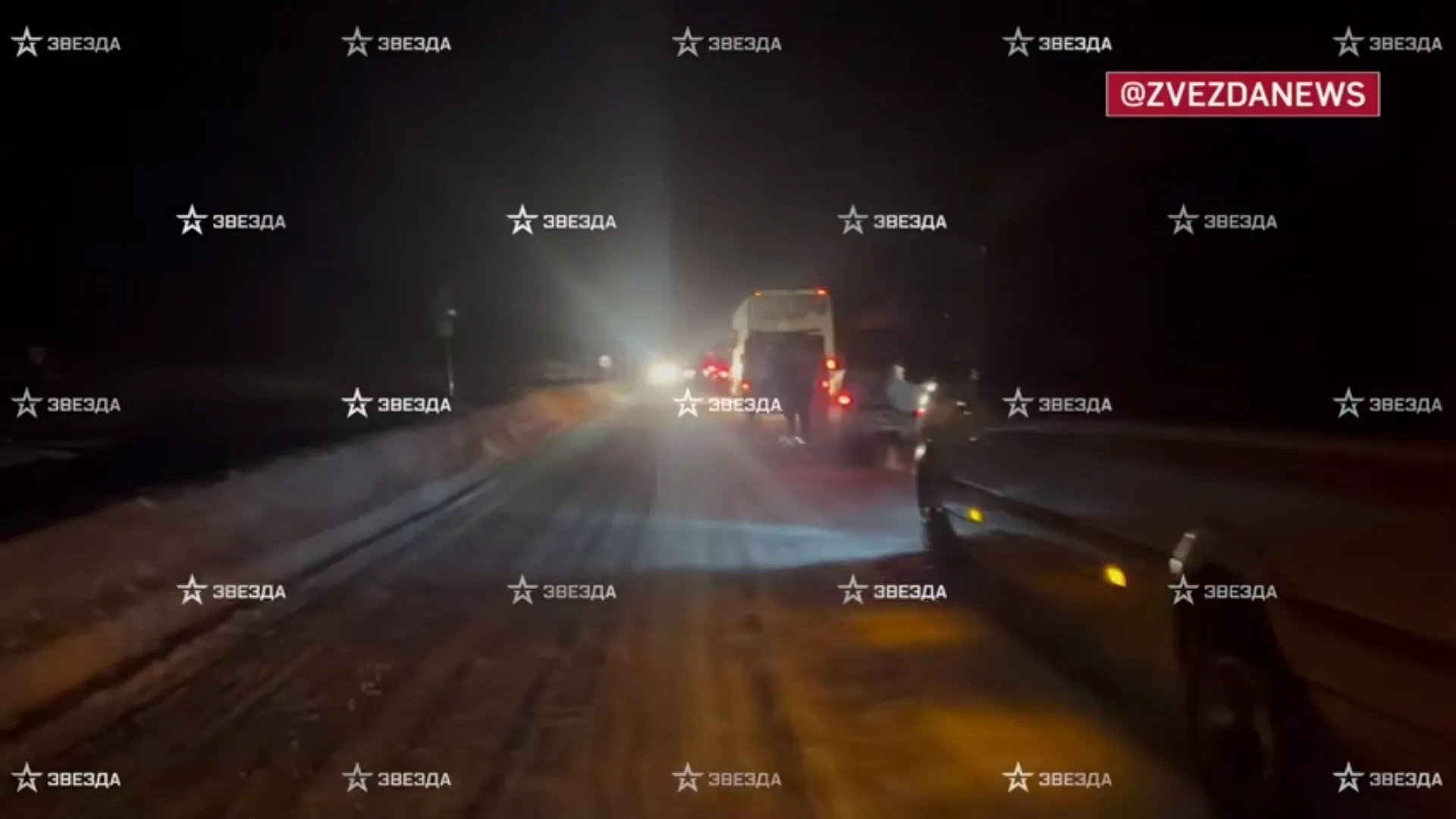 Ночью в пробке люди не унывали, настроение им подняло яркое северное сияние. Они повыходили из машин, чтобы сфотографировать природное явление (3-е видео).