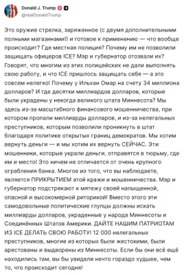Президент США Дональд Трамп отреагировал на стрельбу, обвинив местную полицию в бездействии и заявив, что местные власти поставили офицеров ICE в ситуацию, в которой последние были вынуждены защищаться сами.