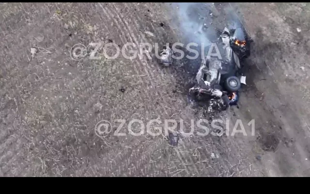Курская область, Суджанский район. Расчеты БпЛА превращают технику НАТО в груды искорёженного металлолома, а украинских оккупантов в пепел.
