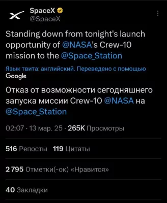 Crew-10 должна заменить экипаж Crew-9, включая российского космонавта Александра Горбунова, который после прибытия сменщиков вернется на Землю.