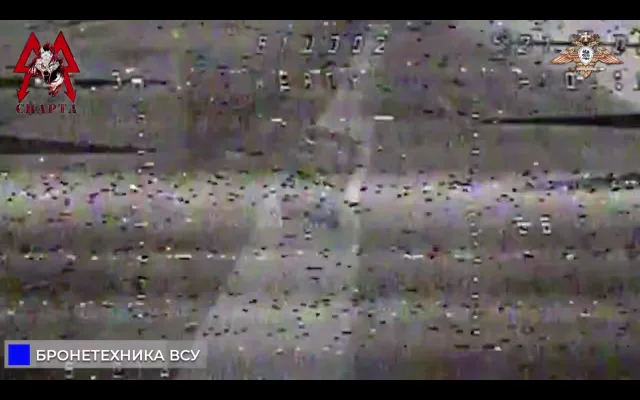 Операторы FPV-дронов батальона «Спарта» 51 гвардейской общевойсковой армии накрыли бронетехнику противника, пытавшуюся прорвать окружение. Горящие машины брошены, экипажи побежали по открытому полю и сами оказались в окружении. Прорыв не удался.